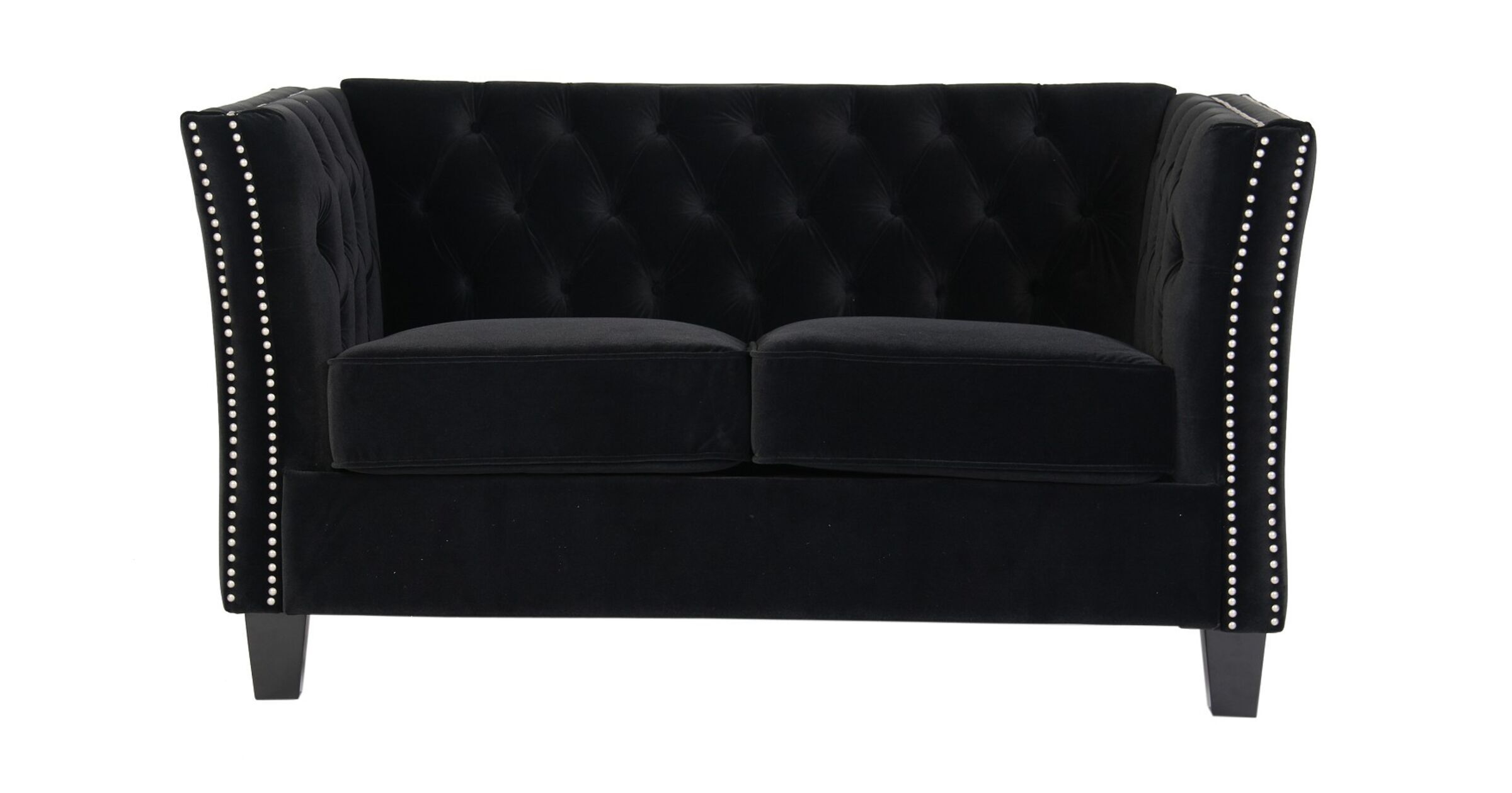 Chesterfield York 2 Seater Flat Pack Sofa Black Velvet Designer Sofas 4U